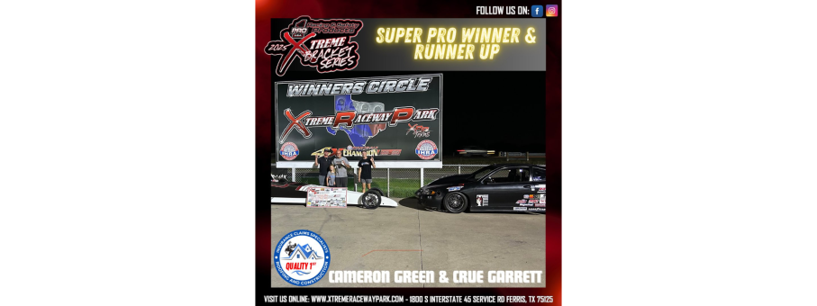Image × FERRIS, Texas — Xtreme Raceway Park has one of the strongest bracket series programs in the country. The Dallas-area track is home to the last two IHRA Summit SuperSeries Top (Box) World Champions. It routinely has huge turnouts to its bracket racing events. That was the case last weekend when the list of heavy hitters was quite impressive. Scooter Hamlin parked his familiar green and black Chevelle in the winner’s circle by beating Crue Garrett in the Super Pro Green final. Garrett was also the runner-up in the Quality 1st Super Pro final with Cameron Green racing to the victory. Graeme Rufenacht has gone from being one of the top junior racers in the country to a force in the big cars, or in his case, his Chevy S-10 pickup. He defeated the 2024 IHRA Mod World Runner-Up Jake Howard in the Pro Blue final. Rufenacht also made the final round in Pro where he finished second to Chad Sandlin. Marty Goss raced to the Sportsman victory with Andrea Ruffin the runner-up. David Puckett was the Dent Eraser Motorcycle winner with Manolo Gonzalez his final-round opponent. Cooper Vazquez led the field in the J. Morton Junior Dragster class with Hunter Holmes making it to the final round. In the Diva’s Daily Drivers, Ashley Ayala won the final over Brandi Boner. The event also featured a pair of Friday Gamblers races. Jackie Jones was the winner over Chad Hankins in the combined bracket and Karmin Nelson won the Junior All Run with Haven Ayala runner-up. Big money is on the line this weekend with the Pennington Brothers SuperBucks Showdown. It is highlighted by $15,000-to-win Super Pro races. Go here to check out the Xtreme Raceway Park Facebook page. Click here to make sure your own IHRA Summit SuperSeries membership is up to date. Previous Next Previous Next Heavy Hitters Haul in Big Wins at Xtreme Raceway Park Xtreme Raceway Park IHRA Summit SuperSeries