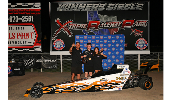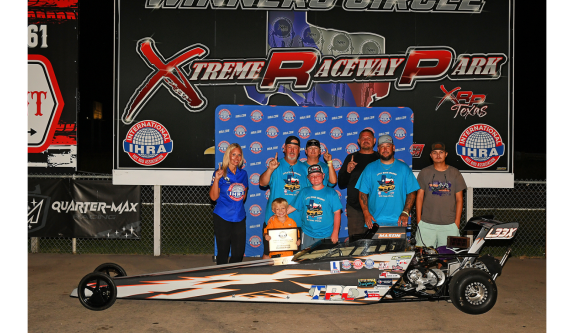 Image × FERRIS, Texas — Host track Xtreme Raceway Park scored its fourth straight and fifth overall IHRA Division 4 (Renegades) Team Finals championship. Xtreme’s No. 1 team scored 70 points to outdistance Penwell Knights Raceway with 49 points. Little River Dragway was third with 43 points, one ahead of Xtreme’s No. 2 team. Edinburg Motorsports Park was fifth with 14 points. It was a powerhouse lineup of racers with Jim Palmer beating defending IHRA SuperSeries World Champion Scott Wallace in the Top (Box) final. Wallace was a little better, .017 to .029 at the tree, but Palmer put together a winning pass of 5.789 seconds and 118.27 mph. Wallace finished in 6.321 seconds and 107.27 mph. Jeromy Helfer, the 2023 Top World Champion, won the Mod (No Box) race when Jake Howard, last year’s IHRA SuperSeries runner-up, red-lighted in the final. Helfer cruised to a 6.440-second run at 81.92 mph after his .013 reaction time. Andrea Ruffin had a .005 start, while Clay Gossett triggered the red light in the Sportsman final. Ruffin completed a strong run with a 7.485-second pass at 89.93 mph on a 7.46 dial-in. Another racer who is no stranger to big wins, Michael Turman, won the Motorcycle final as Steve Landers also fouled at the start. Landers’ red light denied a potential winning effort of 5.891 seconds at 118.30 mph. With the race in hand, Turman cruised to the victory. In the Junior Dragsters, Shane McKinney was the winner after Mason Landers’ breakout on his 9.00 dial-in. Landers had a big advantage at the tree with a .004 reaction time. McKinney stayed with it and posted a 7.893-second run at 82.77 mph. Also, with the younger racers, Mia Valenzuela got the victory over Emma Valenzuela in the TCR final. It was an extremely close race with Mia going 10.379 seconds at 73.37 mph against a 10.19 dial-in. Emma, who had a slightly better reaction time, had a 9.219-second elapsed time at 71.45 mph on a 9.00 dial. Gaylen Smith represented the home track to win the Track Managers race for Xtreme. Special Awards were also presented as follows: Best Open Body / Dragster — Tom Wilkinson Best Appearing Car/Truck — Cole Hurbold Best Appearing Motorcycle — The Landers Family Best Appearing Jr. Dragster — Ellie Picha Photos by: Robert Grice Jim Palmer Top (Box) Winner Scott Wallace Top (Box) Runner-Up Jeromy Helfer Mod (No Box) Winner Andrea Ruffin Sportsman Winner Clay Gossett Sportsman Runner-Up Michael Turman Motorcycle Winner Steve Landers Motorcycle Runner-Up Shane McKinney Jr. Dragster Winner Mason Landers Jr. Dragster Runner-Up Mia Valenzuela and Emma Valenzuela TCR Winner & Runner-Up Ellie Picha Best Appearing Jr. Dragster The Landers Family Best Appearing Motorcycle Tom Wilkinson Best Open Body/Dragster Cole Hurbold Best Appearing Car/Truck Previous Next Previous Next Team Points Previous Next Previous Next Xtreme Raceway Park Wins Fourth Consecutive IHRA Division 4 Team Finals IHRA Division 4 Renegades Team Finals Xtreme Raceway Park